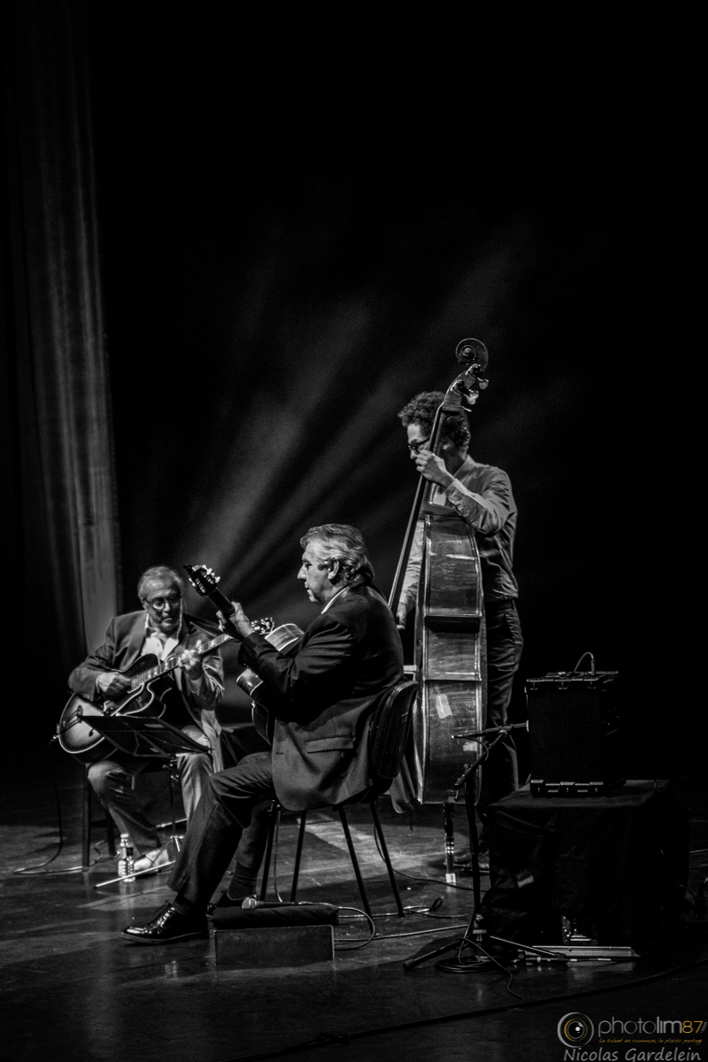Pour faire court, hommage à Django. Une belle soirée de jazz pour nos oreilles, avec quelques beaux dialogues Guitare-Clarinette... Soirée moyenne pour les photographes... les tarifs de l'électricité augmentant, la lumière est de plus en plus rare dans cette salle. Petite sélection vite fait... Avec 2 "pétages de plombs"