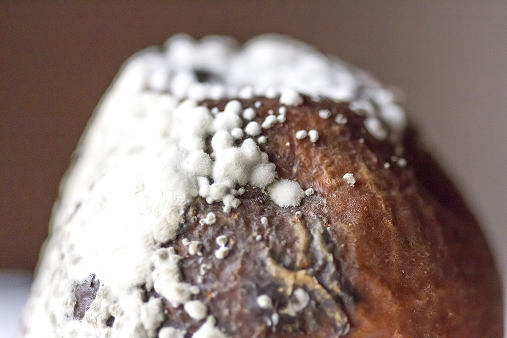 Je vais chercher des pommes au cellier, … tiens, il y en a une pourrie, et moisie (1), on va regarder ça de plus près (2), m'enfin, ça bouge là dedans, on allonge un peu et on trouve de drôles de minuscules bestioles (3), que j'ai d'abord pris pour une espèce de collembole, mais que neni, voilà de jolis acariens, de l'espèce Tyrophagus putrescentiae, (estimation moins de 1/10 de mm) qui mangent les moisissures, mais aussi qui "travaille" dans la croute de certains fromages ( mmmmm, c'est bon ! ).
