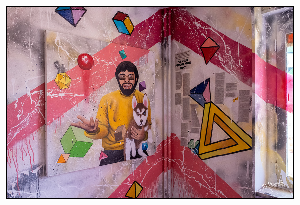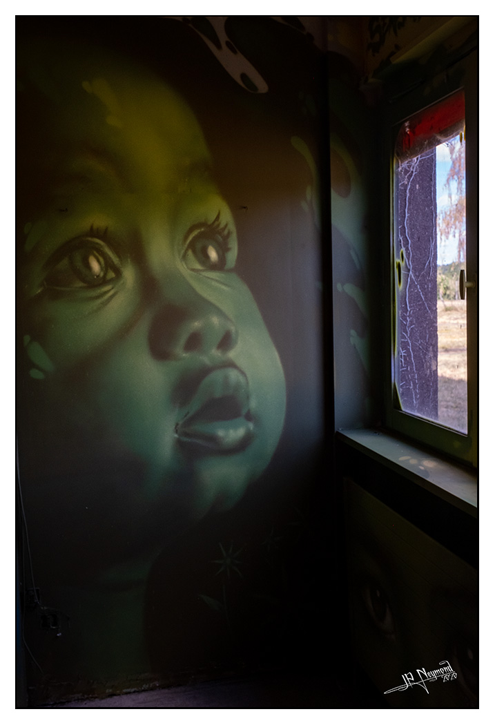 le concept : 1 hôtel désaffecté. En fait un centre de formation avec de minuscules chambres d'étudiants, style cité U. Il y en a 128 réparties sur 4 étages... chaque chambre est livrée à un artiste de street art (venus du monde entier)... Aucune consigne... Visite totalement libre... pas d'électricité... on se déplace à la lampe frontale. Les conditions de prise de vue sont parfois "spéciales"(pour une fois, un 16mm m'aurait rendu service)...