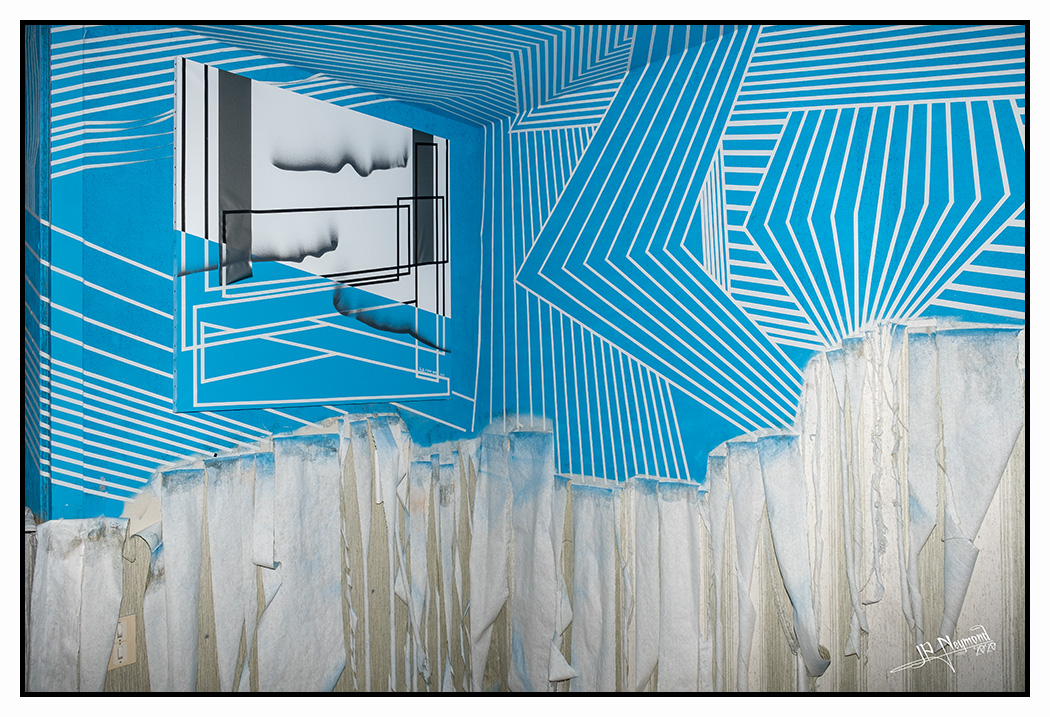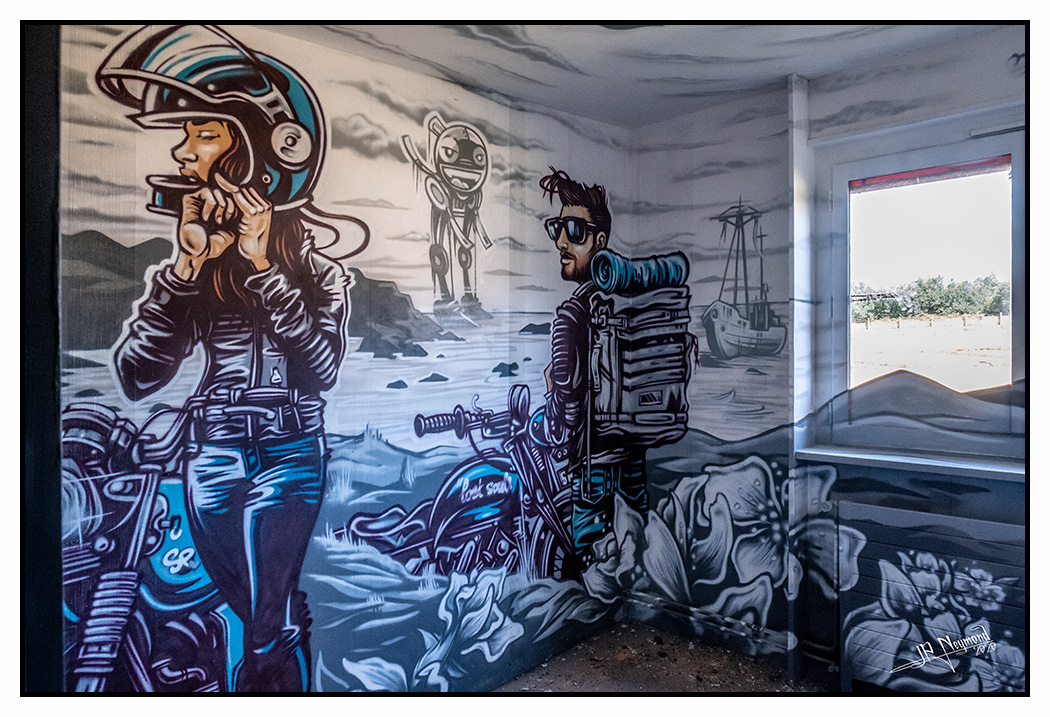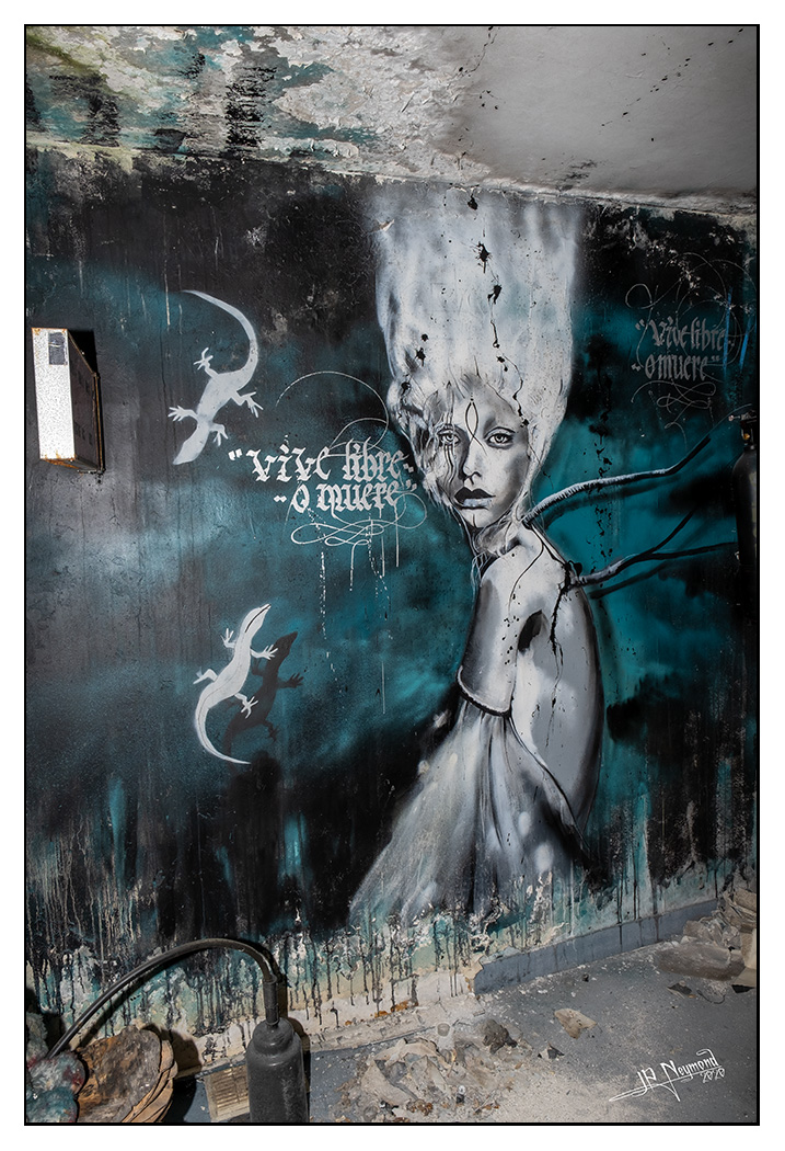 le concept : 1 hôtel désaffecté. En fait un centre de formation avec de minuscules chambres d'étudiants, style cité U. Il y en a 128 réparties sur 4 étages... chaque chambre est livrée à un artiste de street art (venus du monde entier)... Aucune consigne... Visite totalement libre... pas d'électricité... on se déplace à la lampe frontale. Les conditions de prise de vue sont parfois "spéciales"(pour une fois, un 16mm m'aurait rendu service)...