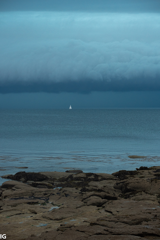 @Roland : je pense qu’il avait dans l’idée d’aller se mettre à l’abri aux Glénan. Il n’en a pas eu le temps. Rattrapé par le coup de vent nous l’avons vu gîter puis