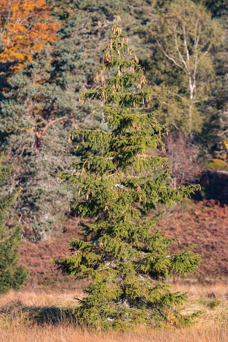 - que les pommes de pins sont plus nombreuses en haut qu'en bas,