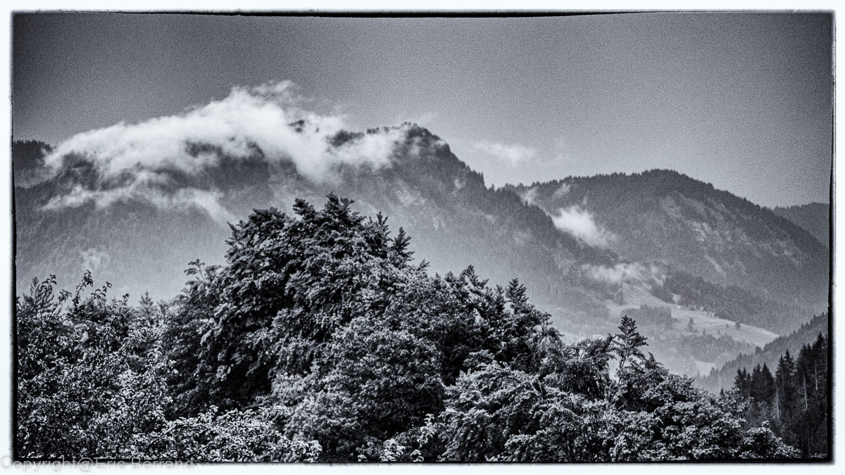 On continue sous oxygéne. pointe de l Aiglères. version nature et noir et blanc imitation timide de Clay Adams. Merci LR fusion deux photos pour obtenir le panorama avec une focale fixe 50mm.