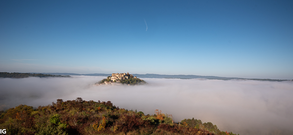 On attend que la brume se lève, on s'éloigne un peu et l'on comprend pourquoi depuis 1983 Cordes a pris le nom de cordes sur ciel.