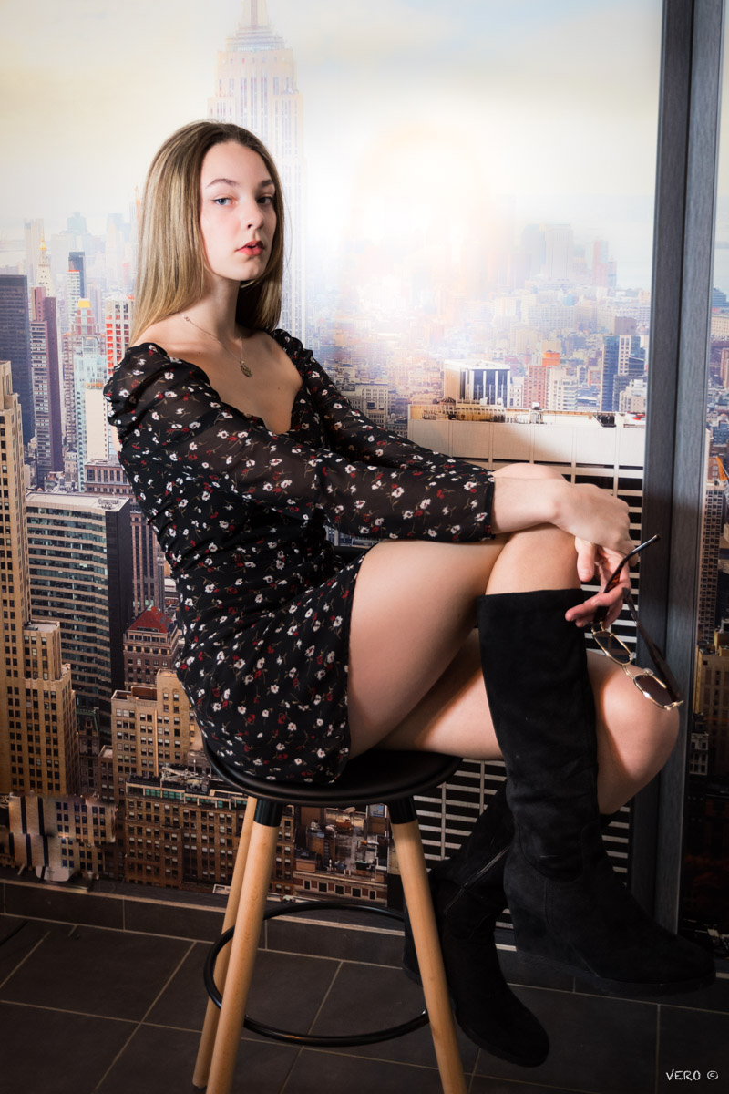 Sa maman m'a proposée de lui faire une séance de mise en valeur et reprise de confiance en elle, vu que c'est aussi une adolescente, et que les premiers essais ont été relativement traumatisants., d'où cette expérience à toutes deux, car mis à part deux ou trois expérimentations, je balbutie aussi dans la photo studio et quelques dimensions techniques.