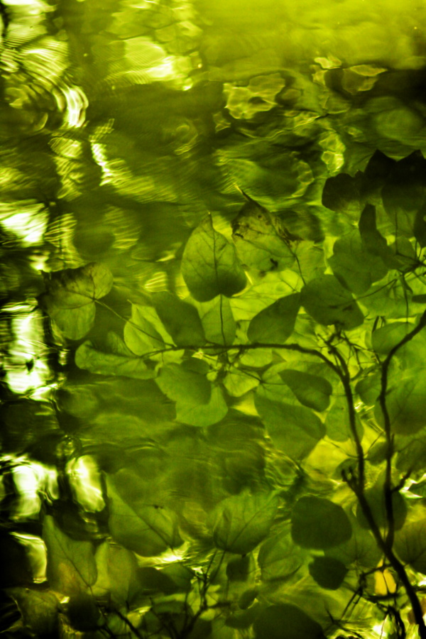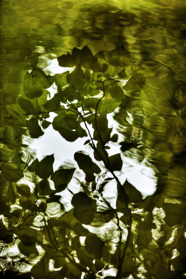 Le reflet des feuilles de Catalpa sur l'étang...