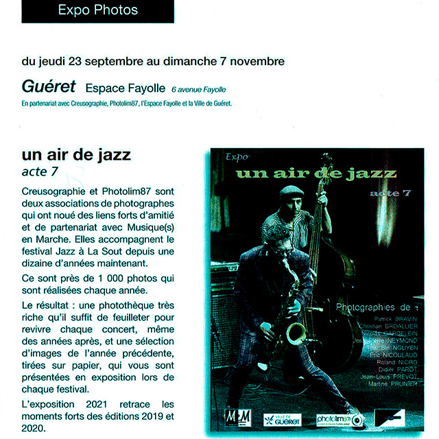 Voilà le programme de Jazz à La Sout 2021 ; pour ceux qui sont intéressés, inscrivez vous sur ce post, DEAD LINE LE 28 SEPTEMBRE minuit ; comme d'habitude, je vous indiquerai vos possibilités de shoot en fonction du nombre de demandes et des capacités de chaque salle.