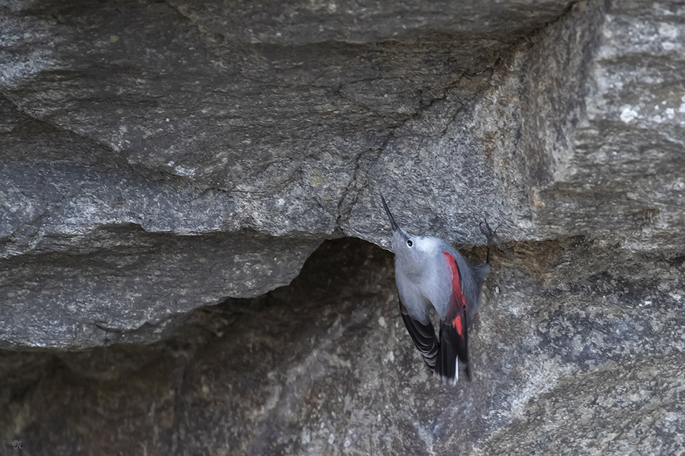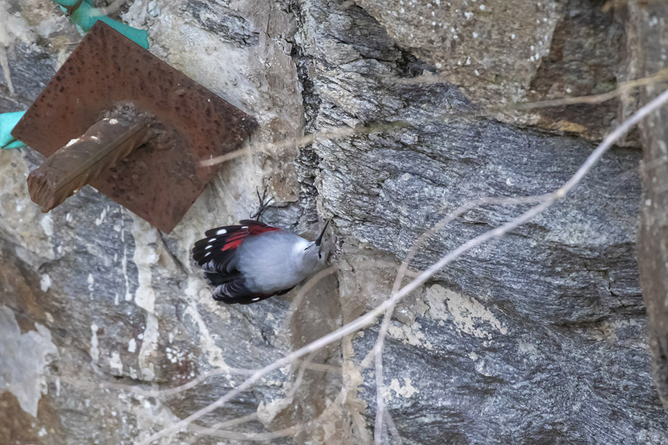 Il est plus habitué aux hautes altitudes de montagne et est, de plus, relativement rare semble-t-il : je vous présente le Trichodrome échelette, appelé "oiseau papillon", individu venu hiverner chez nous ; la bestiole n'est pas plus grosse qu'une mésange charbonnière et la dernière image est très cropée, car shootée à plus de 80m, ... mais c'est la seule dont je dispose en vol.