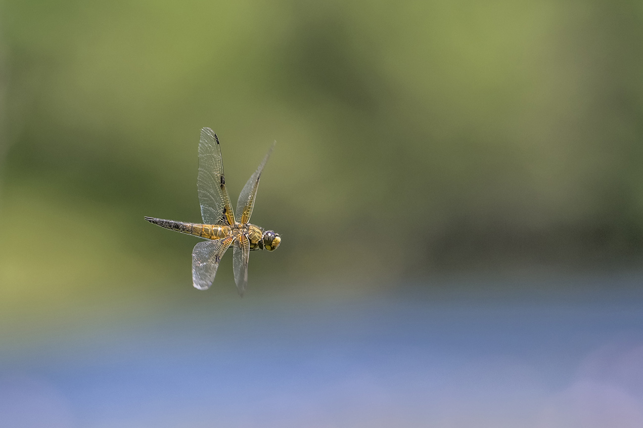 Libellula dépressa femelle ; Bravo Emmanuelle, elle est très belle et dieu sait que l'exercice de la bête en vol est un exercice qui demande volonté et patience.