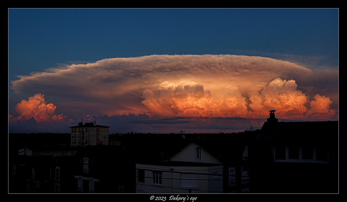 Voyage d'une cellule orageuse passant par Limoges ce soir, avec la complicité du coucher de soleil.