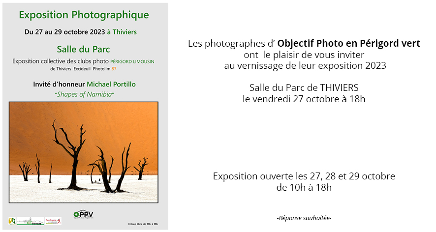 L' oppv exposition 2023 se déroulera le 27, 28,et 29 octobre à Thiviers , vous êtes les bienvenus.