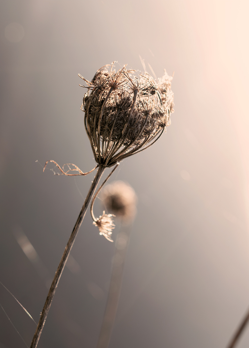 Sur les bords du lac d'Uzurat s'agite au vent une fleur séchée.