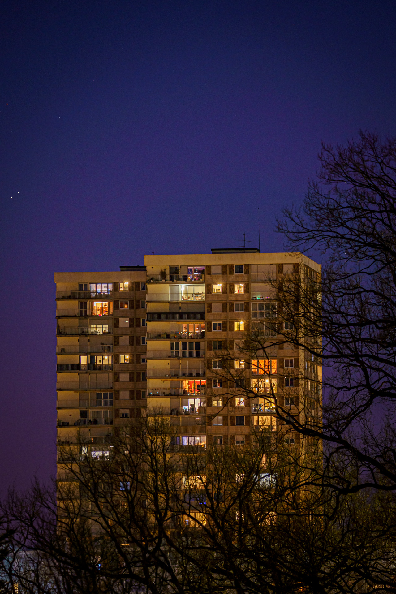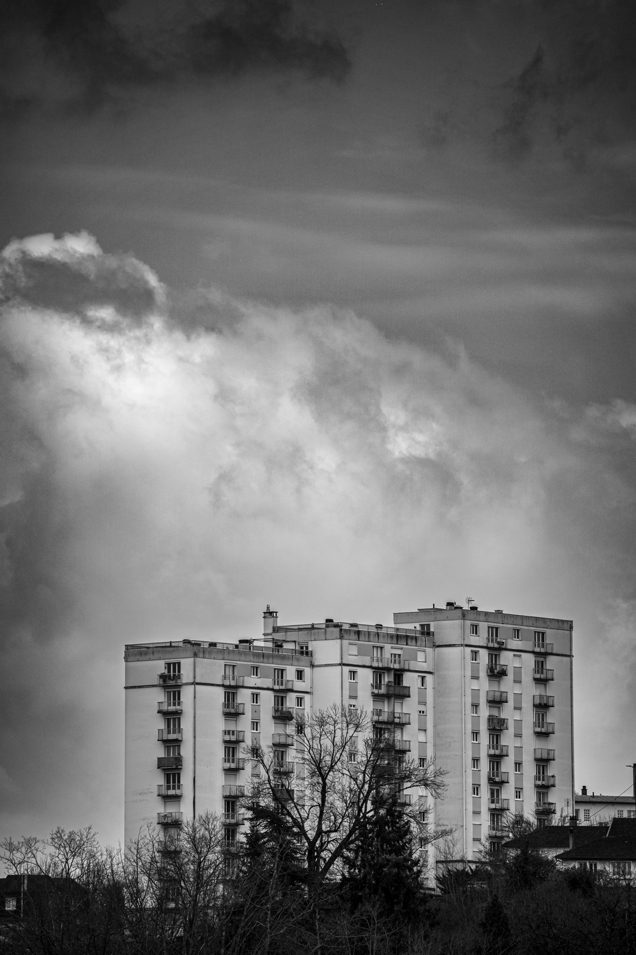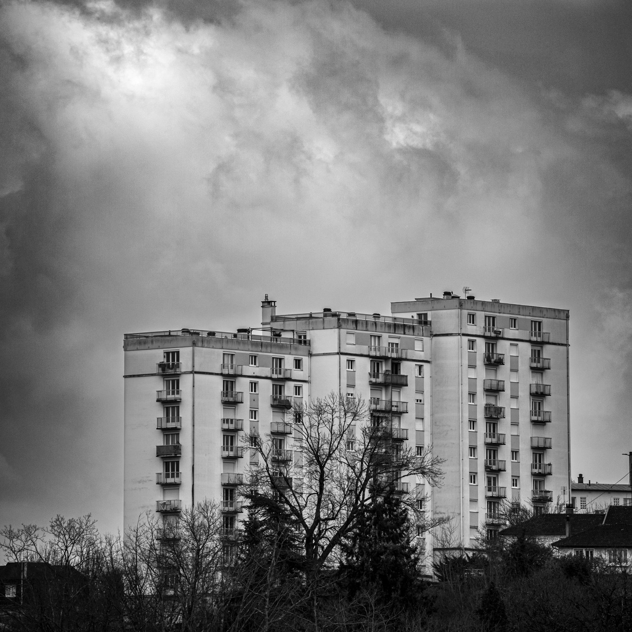 Mon propos est d'avoir un regard sur la place des complexes HLM dans le paysage urbain... je trouve que leur importance est différente selon si l'on place au pied ou au loin. Le recadrage donne donc pour moi trop d'importance au bâtiment.