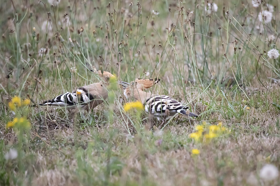 Là je me suis régalé : 2 heures de shoot en affût et 1200 photos au retour (merci le tri) ; la seconde est un improbable face à face entre une huppe et un pic vert ... malgré la surprise évidente, pas d'agressivité, chacun a continué sa vie.