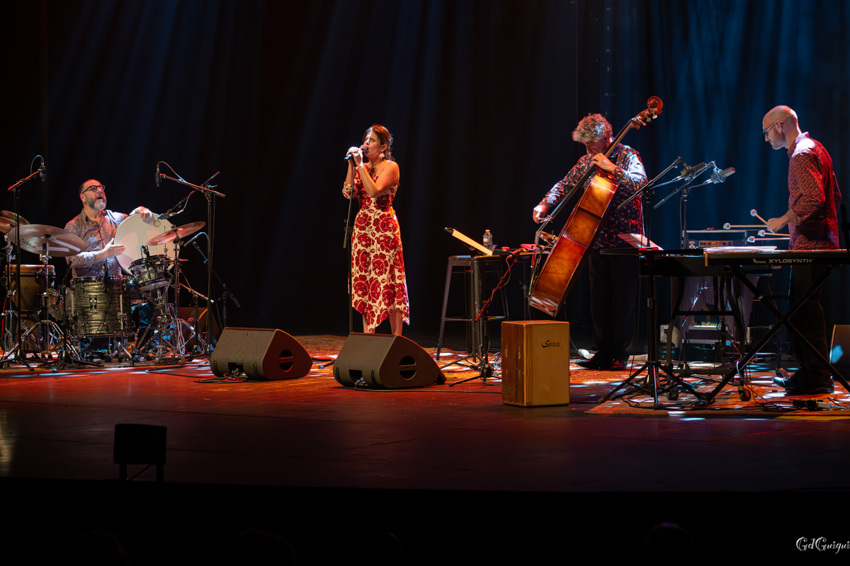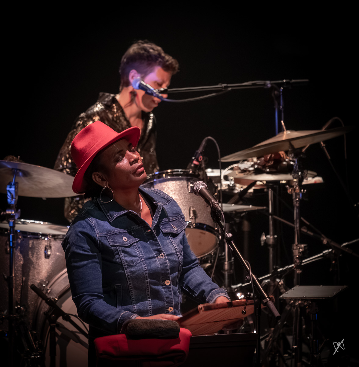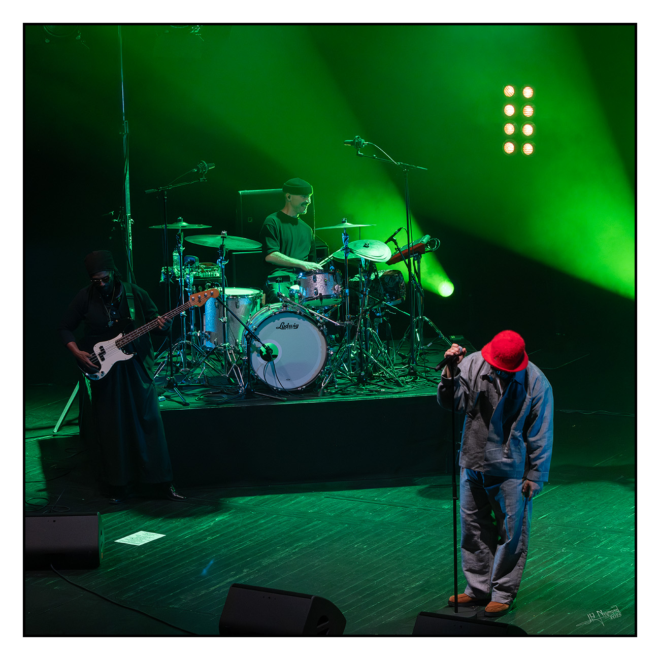 ...et puis, Christine Salem à Jean Moulin. Un super concert, elle est formidable. Malheureusement, le Jean Moulin est moins formidable. Eclairage principalement de l'arrière, donc artistes en partiel contre jour et la chanteuse portait un chapeau qui mettait son visage à l'ombre la plupart du temps. En plus, le scène a été très encombrée par des trépieds et micros.