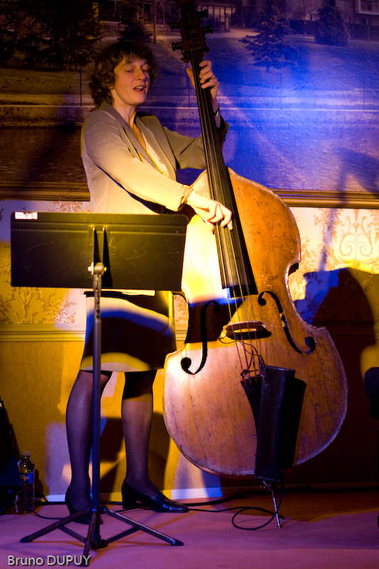 j'ai pas vraiment apprécié la lumière... Le spot bleu en pleinsur l'image derriere + le spot jaune en pleinmilieu de la contrebasse...