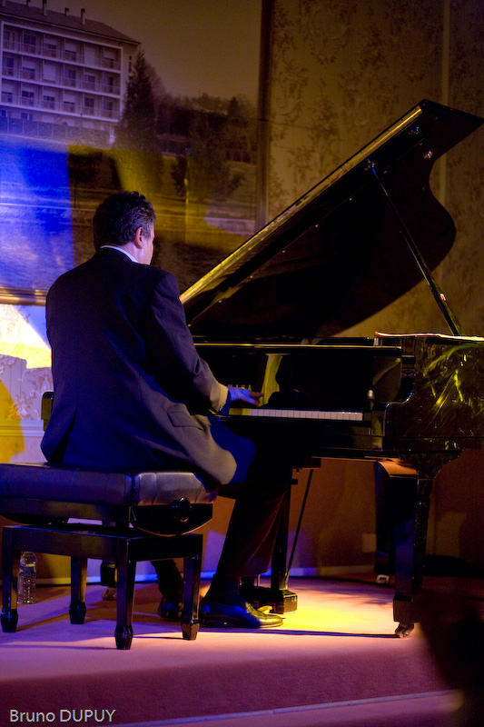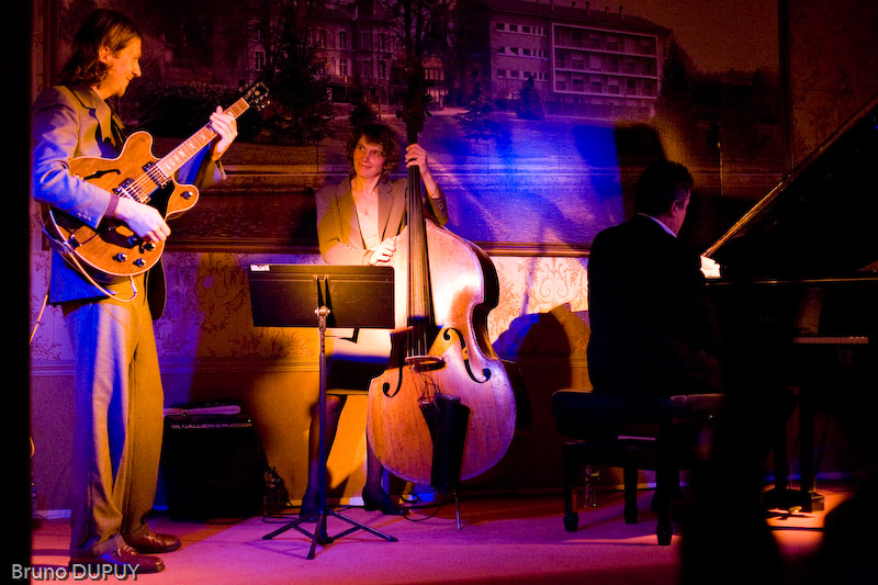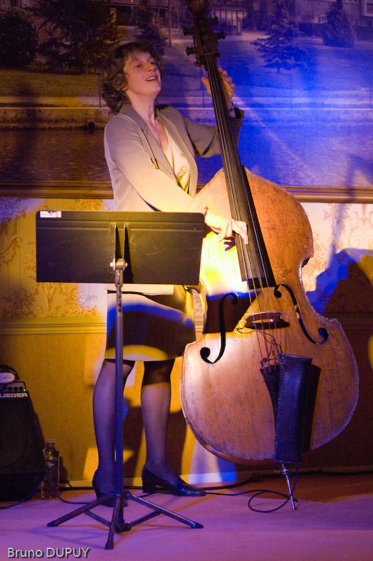 j'ai pas vraiment apprécié la lumière... Le spot bleu en pleinsur l'image derriere + le spot jaune en pleinmilieu de la contrebasse...