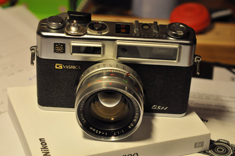 Le Yashica c'est un télémétrique ultra silencieux avec une optique à 1.7, priorité ouverture, la vitesse se cale en conséquence mais ne s'affiche pas, seuls repères des diodes lumineuses, 30è en limite de sous ex et 500è en sur ex