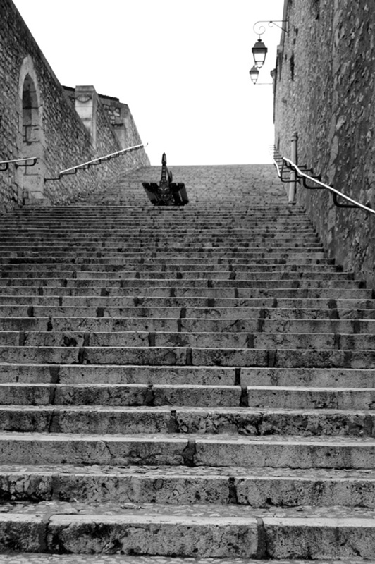 j'aime bien l'escalier avec ce banc surréaliste au milieu !