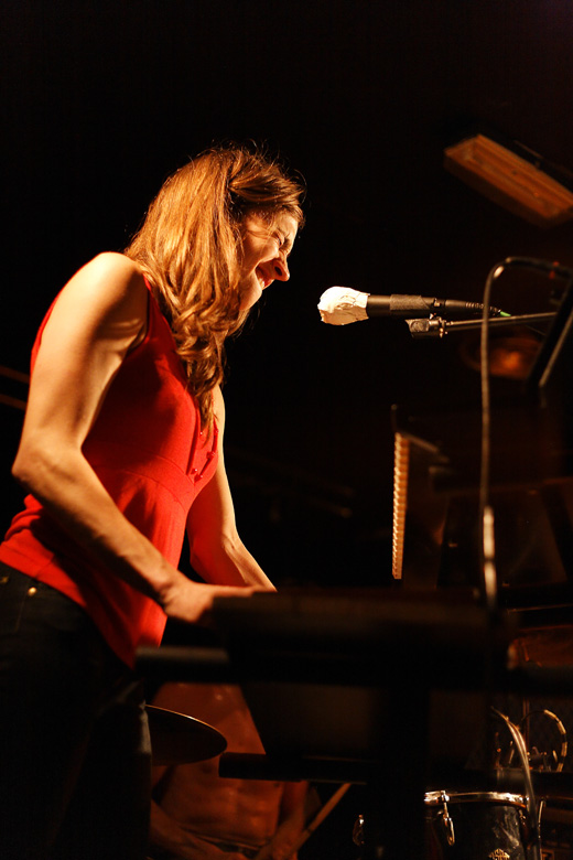 C'est clair que le monsieur était plus expressif, mais en même temps la demoiselle jouait sur trois clavier différents en même temps donc c'est vrai qu'elle était assez concentrée ( en plus ses claviers justement m'empêchait de prendre un photo de face, très peu d'angles en fait pour la shooter, juste deux espace dont un entre les deux "racks" de claviers!). Gaffe aux acouphènes Christophe, faut prendre des bouchons, j'ai un pote qui en a un qui dure depuis plusieurs semaines!