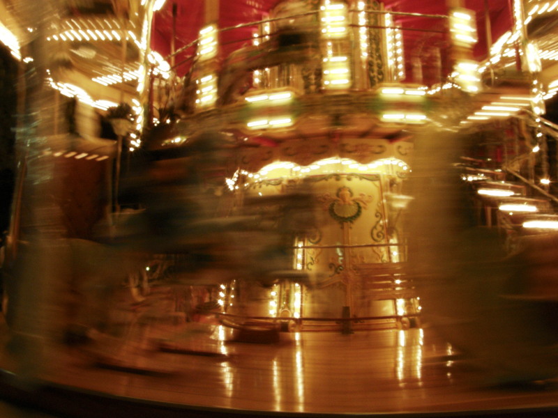 ), puis de prendre ta photo en faisant varier la vitesse: vitesse élevée pour figer le mouvement, vitesse très lente pour un effet de flou constant (mais avec ton arrière plan net puisque sur pied) ou bien en te mettant un peu entre les 2 pour qu'on distingue quand même les chevaux de bois