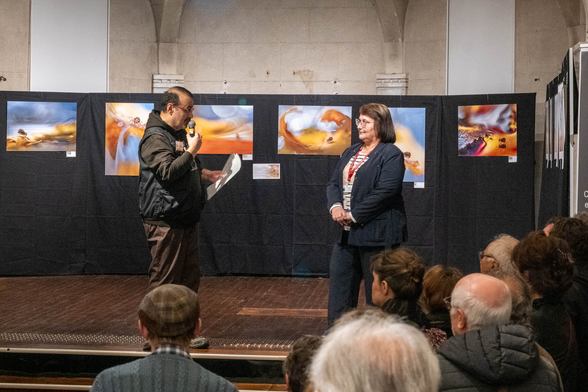 Le président Éric Berrand a procédé, vendredi 13 mars en soirée, à l’inauguration de la dix-septième édition annuelle de l’exposition PhotoLim87, organisée à l’Espace Noriac à Limoges. Il est ici photographié présentant l’invitée d’honneur, Mme Martine Propice, devant quelque cent soixante-dix convives rassemblés pour l’occasion.