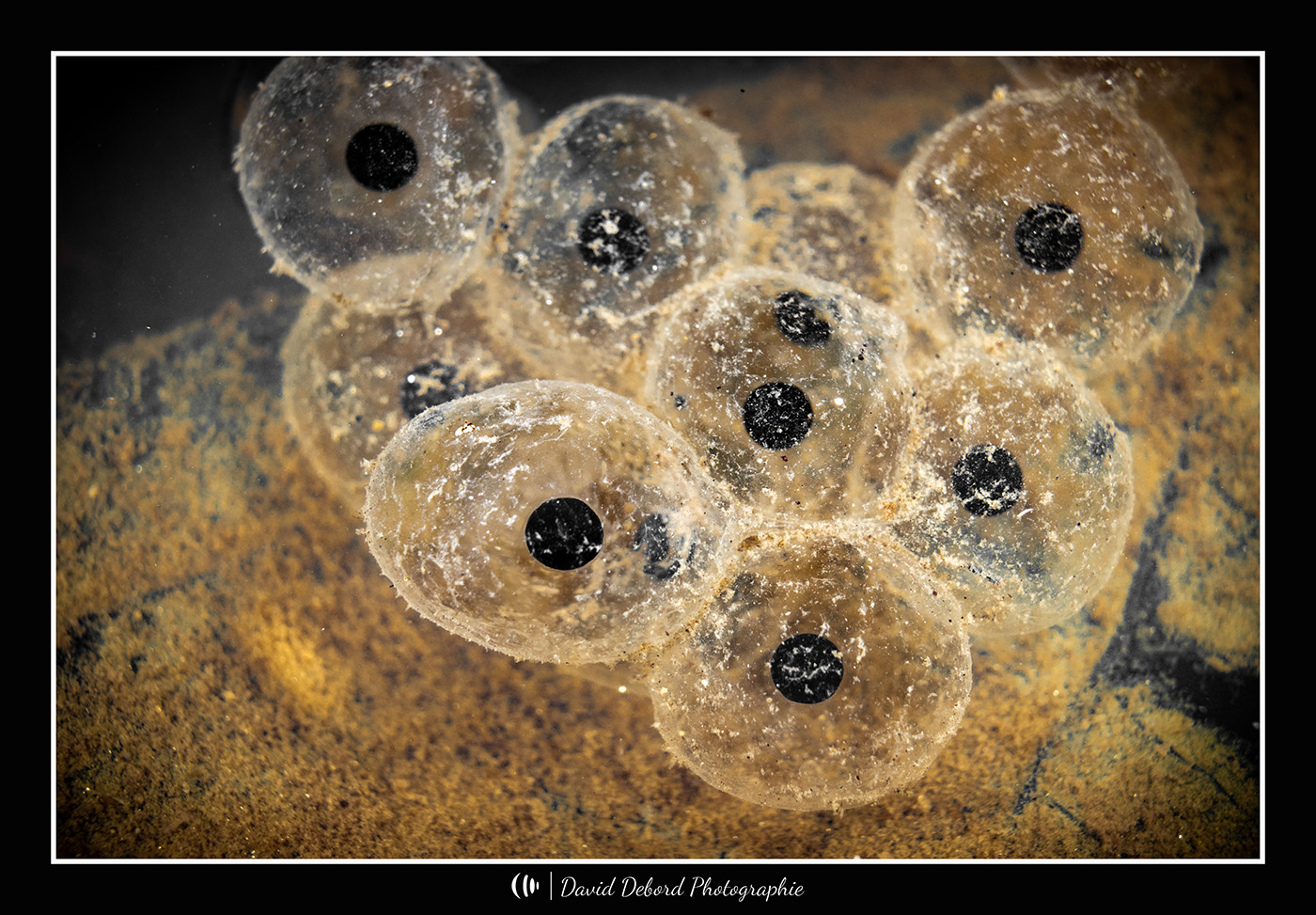Ta trouvaille me ferait bien penser à une ponte de crapaud sonneur à ventre jaune (sans certitude toutefois) ; tu peux vérifier les bords de la flaque d'eau, tu trouveras peut-être des adultes, s'il ne fait pas trop froid ; ils sont totalement protégés.