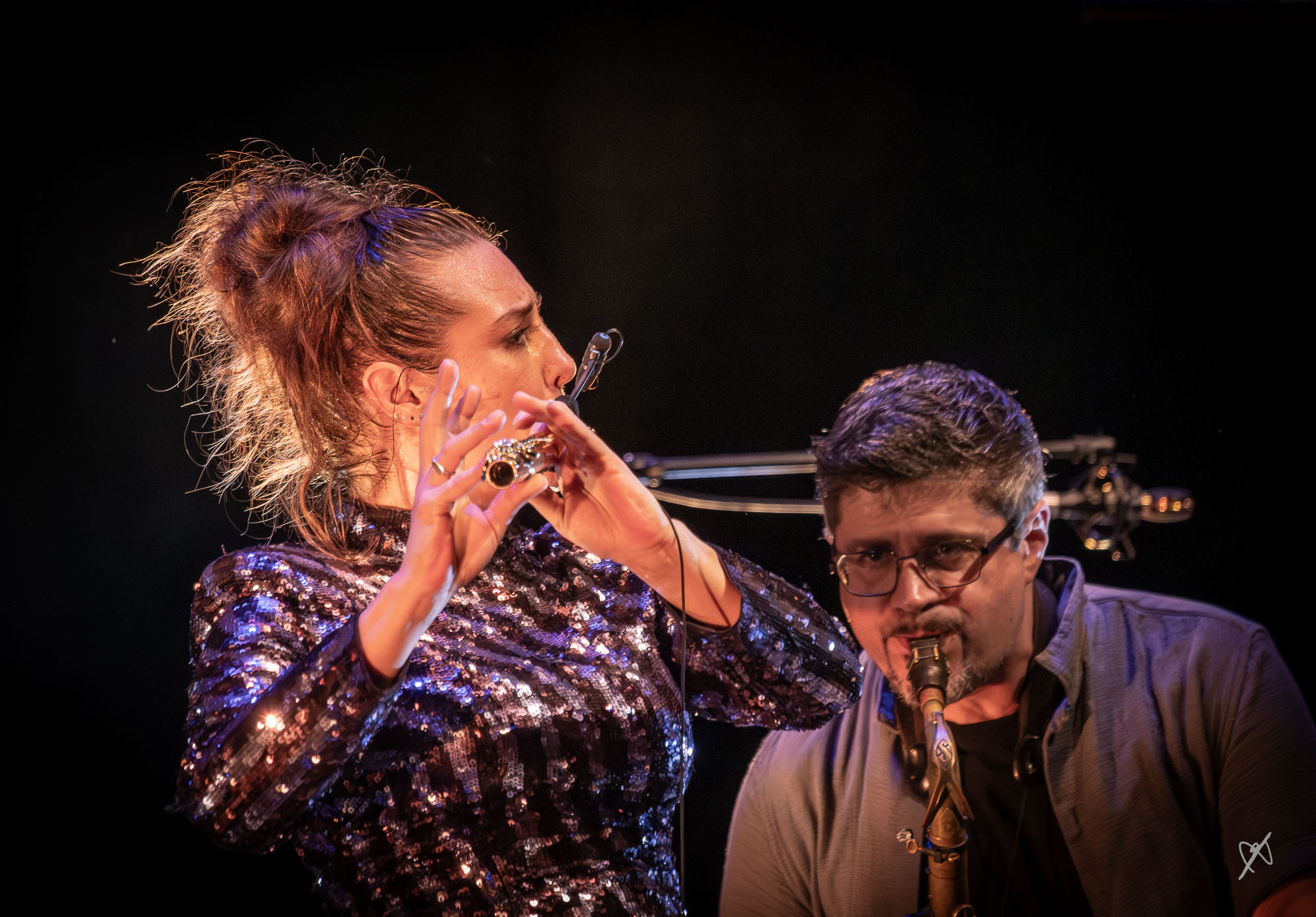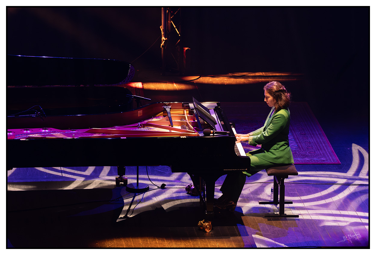 ...et puis, Christine Salem à Jean Moulin. Un super concert, elle est formidable. Malheureusement, le Jean Moulin est moins formidable. Eclairage principalement de l'arrière, donc artistes en partiel contre jour et la chanteuse portait un chapeau qui mettait son visage à l'ombre la plupart du temps. En plus, le scène a été très encombrée par des trépieds et micros.