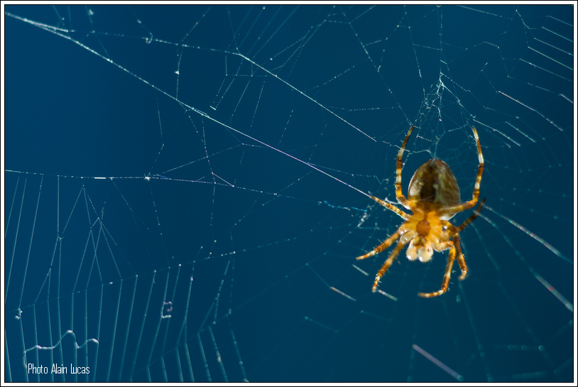En fait j'ai joué de la distance flash et de l'exposition pour donner du contraste, je n'ai rien modifié en post traitement, sauf un peu de surex sur l'araignée.