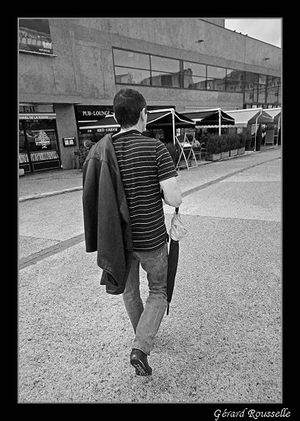 sinon la decontraction dans l'art de porter un parapluie,le mouvement et la perspective du vide qu'il a devant lui,un beau maillot a rayure...etc:cool: