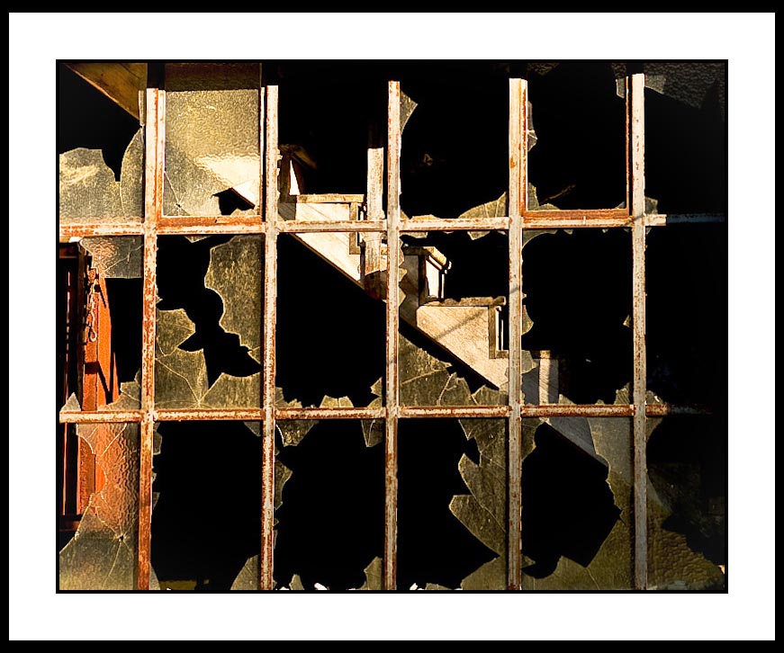Super Eric ; c'est nettement meilleur que tes premiers schoots, aussi bien dans le cadrage que dans la zone de netteté, et ton traitement est agréable ; la soupe d'Alain donne également un bon résultat, plus "violent", peut-être + en adéquation avec les vitres cassées ?.