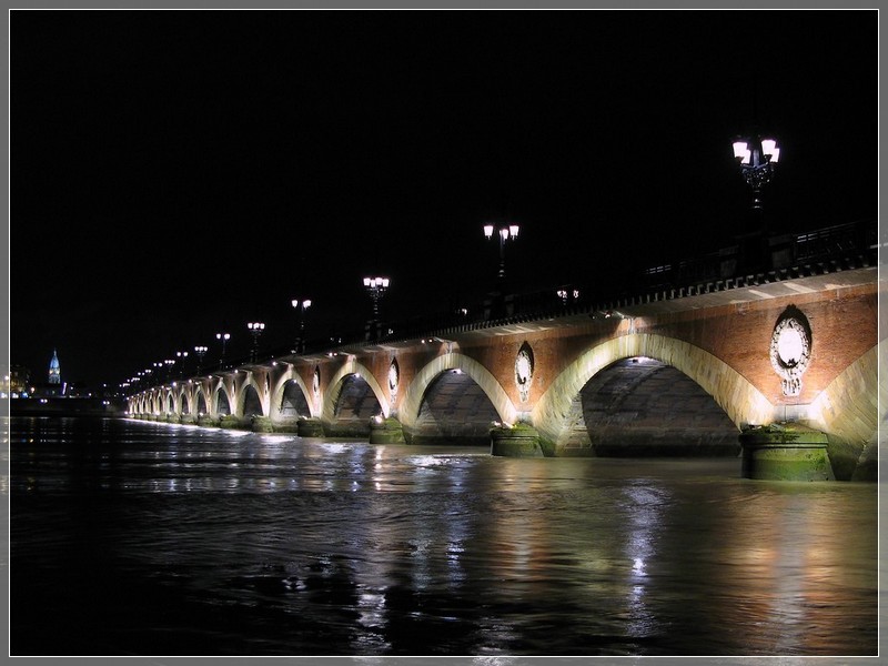 le fameux pont de pierre, vu de nuit, Bordeaux....
