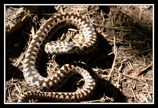 hé ben renard en tant que grand amateur de reptiles, je tient à te tirer mon chapeau pour ces clichés .....les premieres ne sont pas terribles (un peu trop de flou) mais on voit bien que cette vipere ete sur la defensive et prete a attaquer pour ce defendre ......jolie coup donc j'aurais aimé etre là avec vous pour pouvoir l'attraper de mes mains .......les trois dernieres niveau lumiere sont beaucoup mieux.....mais c'est vrai comme le dit si bien seb que la vue en plongée ne la met pas trop en valeur ......cette vipere est réputée pour etre assez agressive envers les individus qui rentre sur son territoire ( et croyez moi je m'y connais)