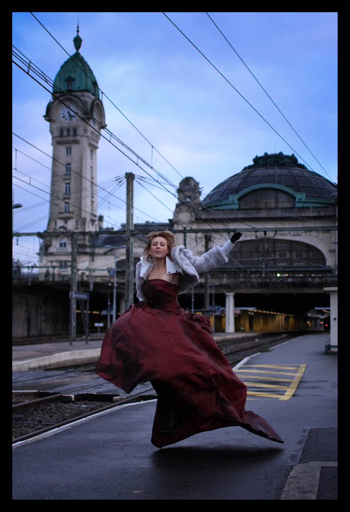Sinon je trouve un peu chargé l'ensemble avec ces câbles au dessus de sa tête mais là encore difficile de faire autrement. Le point positif reste quand même se saut avec cette robe qui donne toute l'énergie de la photo (et sans les jambes je trouve que l'effet est encore plus saisissant)