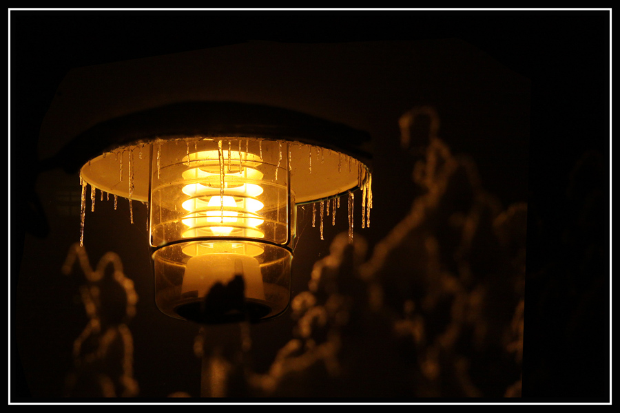 Très belle photo pour moi avec rendu de la texture de stalactites de glace, arrière plan interrogatif sur fond de couleur chaude.