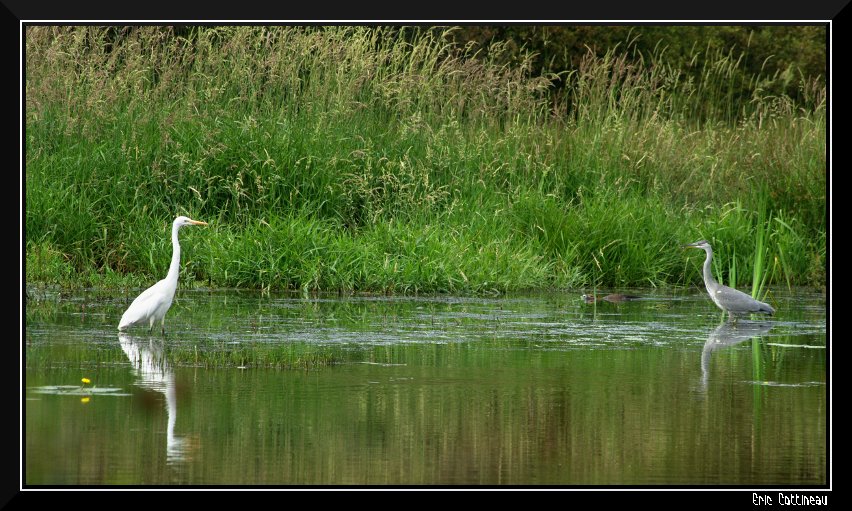 L'intérêt que je voyais aussi à la mienne, est la présence du ragondin entre les deux oiseaux.
