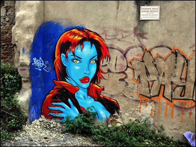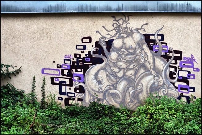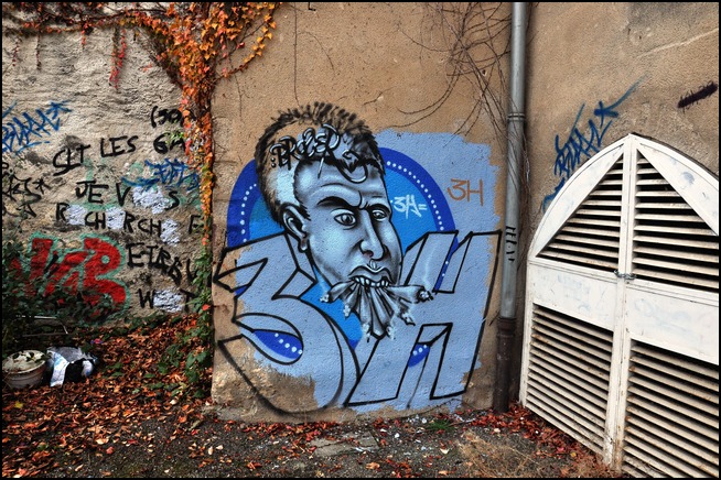 J'ai laissé ces photos "dans leur jus, pratiquement sans retouche ni recadrage; le plus important, pour moi, étant le graff lui-même!