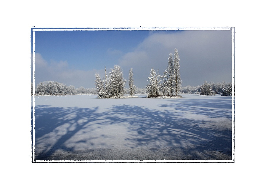 Autant ce genre de graphisme fonctionne à merveille sur la 4 de la 1ère série, autant à mon sens çà ne marche pas sur celle-là. peut-être parce qu'il y a trop de "bosses". Je pense que l'idée de la photo originale est bonne, simplement, il aurait fallu décaler la ligne de séparation neige-arbres de manière à ne pas l'avoir au milieu de la photo.