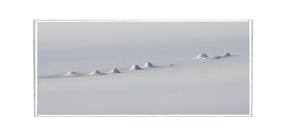 La 1 de la deuxième série aurait pu donner quelque chose de sympa... si la ligne de séparation neige-arbres n'avait pas été positionnée quasi exactement au centre de l'image... J'aurais préféré un point de vue de plus bas donnant plus d'importance à la neige et aux "bosses" et couvrant presque les 2/3 de la photo