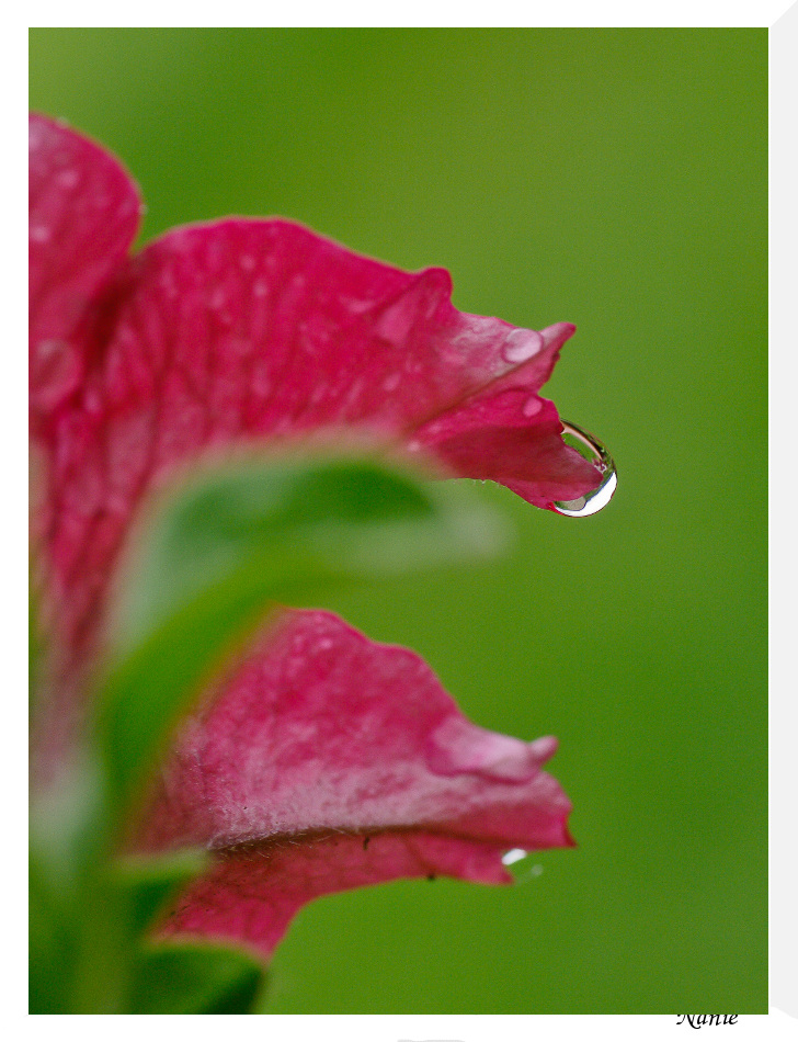 les pétunias après une des nombreuses averses.