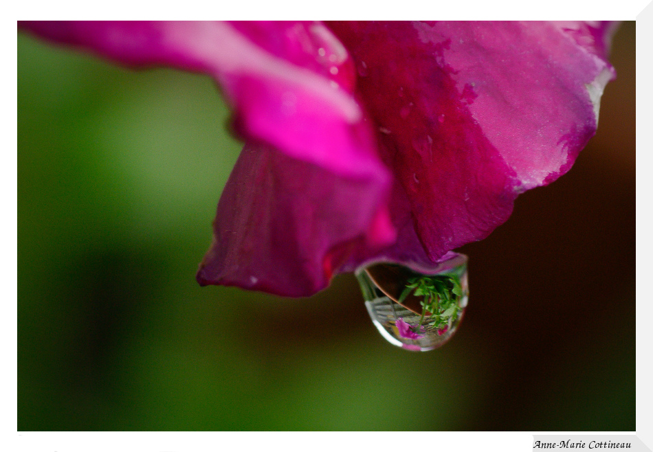 C'est très banal par les temps qui courent, mais j'ai du mal à résister à l'attrait de ces petites perles sur les fleurs ou feuilles du jardin.
