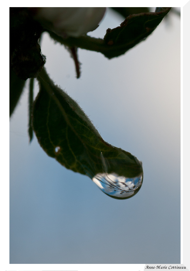 Quelques gouttes accrochées aux branches de pommier