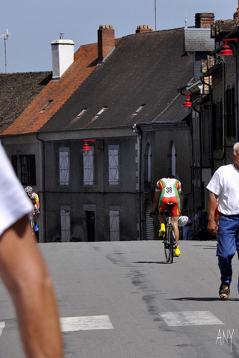 JP, ce bras à gauche, j'en ai enlevé un peu mais j'en ai laissé volontairement, pour garder un repère et me situer dans la foule avec des gens qui me passaient dans tous les sens. Les " chaussettes jaunes " du coureur n° 38 sont ma préoccupation principale, car beaucoup de coureurs avaient des maillots jaunes et ça devenait banal