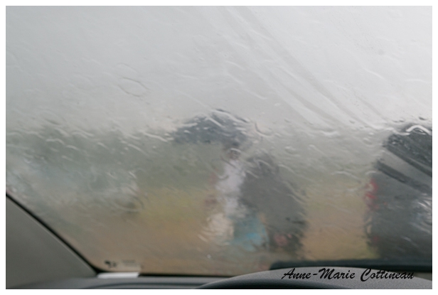 A notre arrivée, pluie d'orage +++ , attente dans la voiture, pas moyen d'en sortir