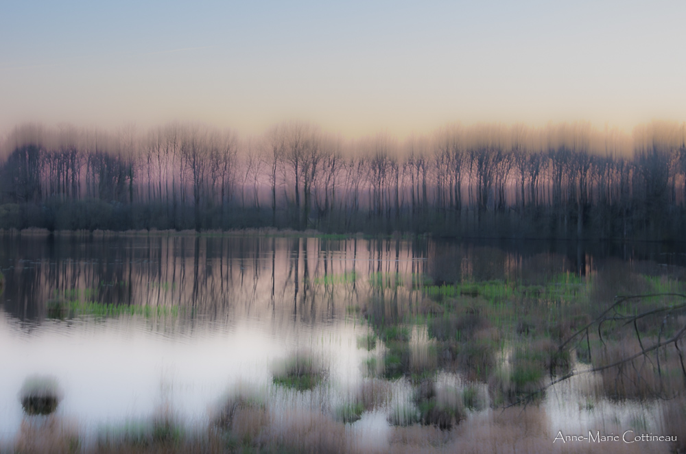 Ambiance colorée à l'Etang des Landes au coucher de soleil.