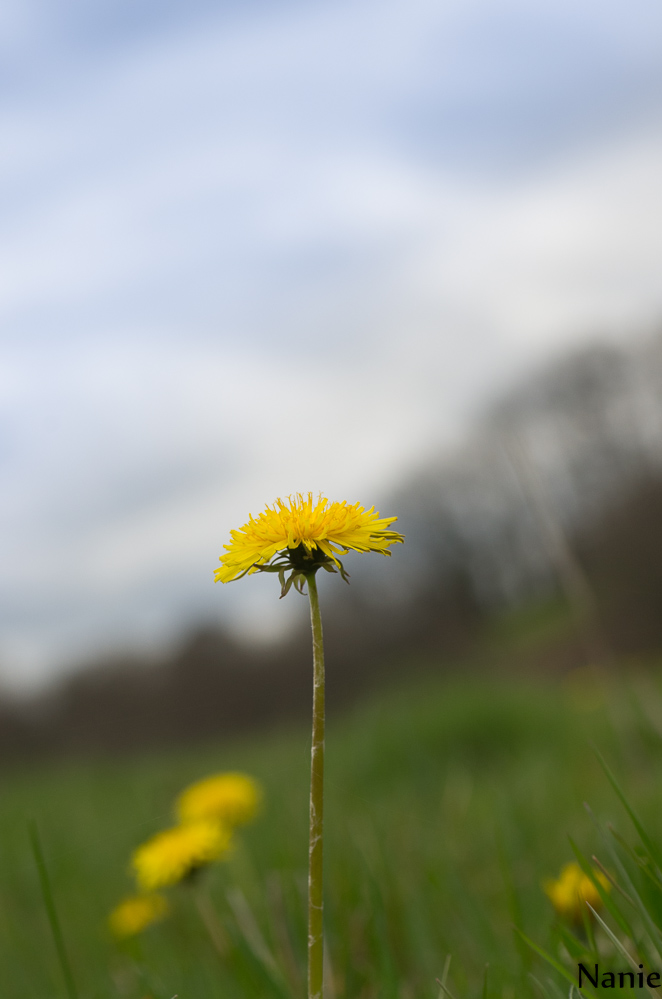 Ca donne une impression qu'un pissenlit prend la parole sur une audience de pissenlits ou alors c'est elle qui mène une troupe, en tous cas c'est bien elle qui domine les autres à travers sa posture bien droite tête haute avec un bokeh qui renforce sa position.