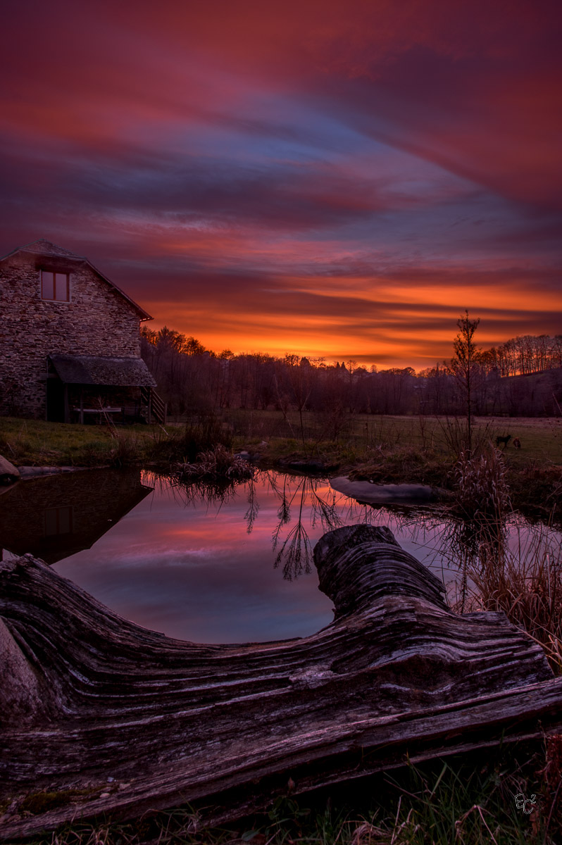 Un lever de soleil à Sainte-Anne Saint Priest et un coucher de soleil à Neuvic-Entier..