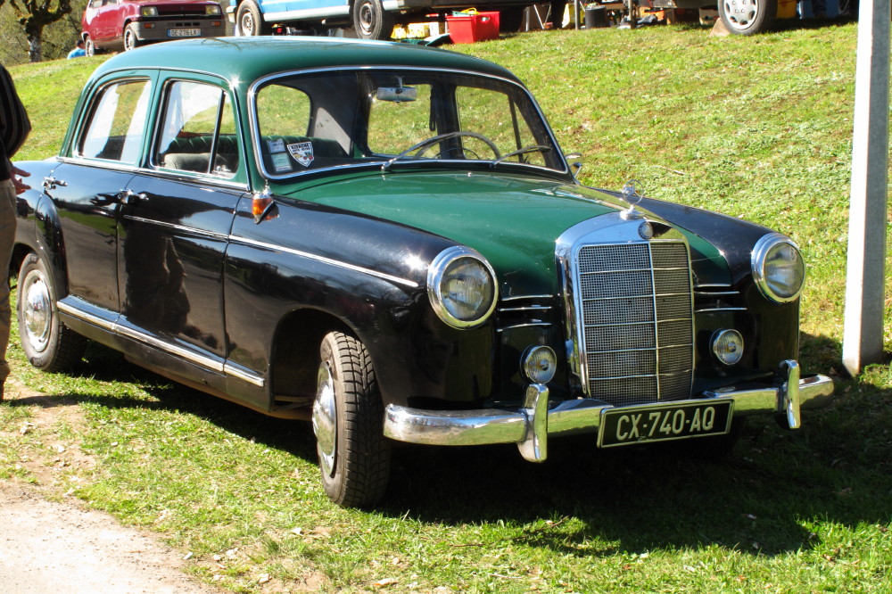 J'aimerais seulement je suis arrivé tardivement et j'ai croisé de superbes carrosses d'entre deux guerres retournant sur Limoges... Néanmoins il me reste cette Mercedes W120/W121 construite entre 1953 et 1962 utilisé fréquemment en Taxi tellement c'est robuste, d'ailleurs je pense que celle ci était un ex-taxi Portugais vu la peinture bi-ton majoritairement noire et le dessus en vert, les couleurs des taxis Portugais ont changés dans les années 90 pour une couleur uni beige/sable particulièrement banale d'ailleurs.