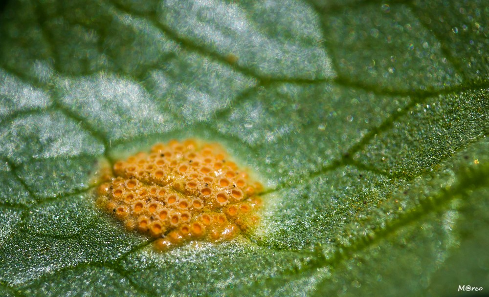 Je pense sous toute réserve qu'il s'agit d'un champignon parasite au nom de " UROMYCES PISI" sorte de galle végétale. Il faudra que je reprenne mes cours de mycologie de 1968 ... Ca fait loin...Je vais quand même chercher.