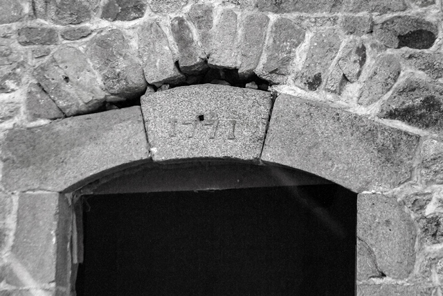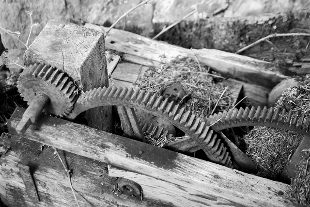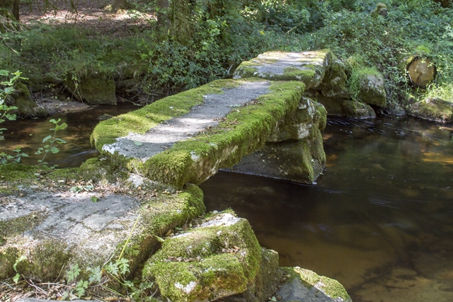 Pont-planche sur la Gioune puis ce qui reste du vieux moulin de Ronteix.